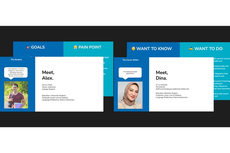 At Cakap, I also led the development of the initial user personas and produced nearly all personas used by the product team to understand our users. Among all, the Upskill User Persona project stands out as one of my favorites—thanks to its complexity and the collaborative process that made the work especially meaningful by translating complexity into clarity and data into empathy.