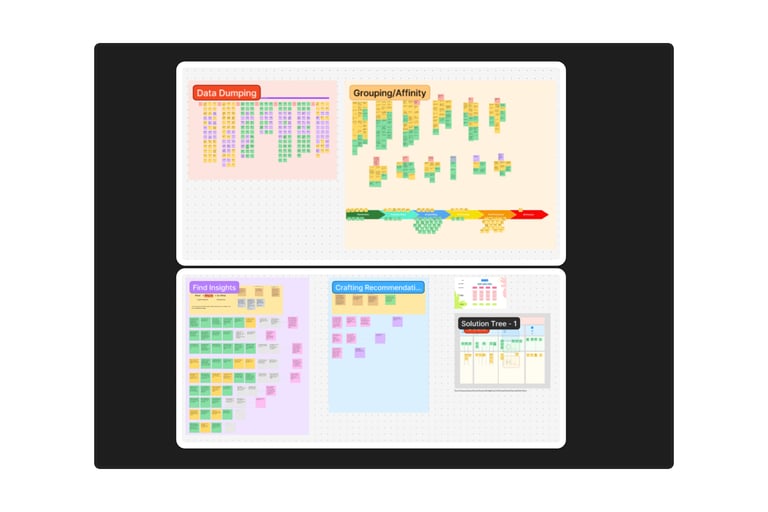 Affinity Mapping & Thematic Analysis to synthesize insights from interviews and behavioral patterns.